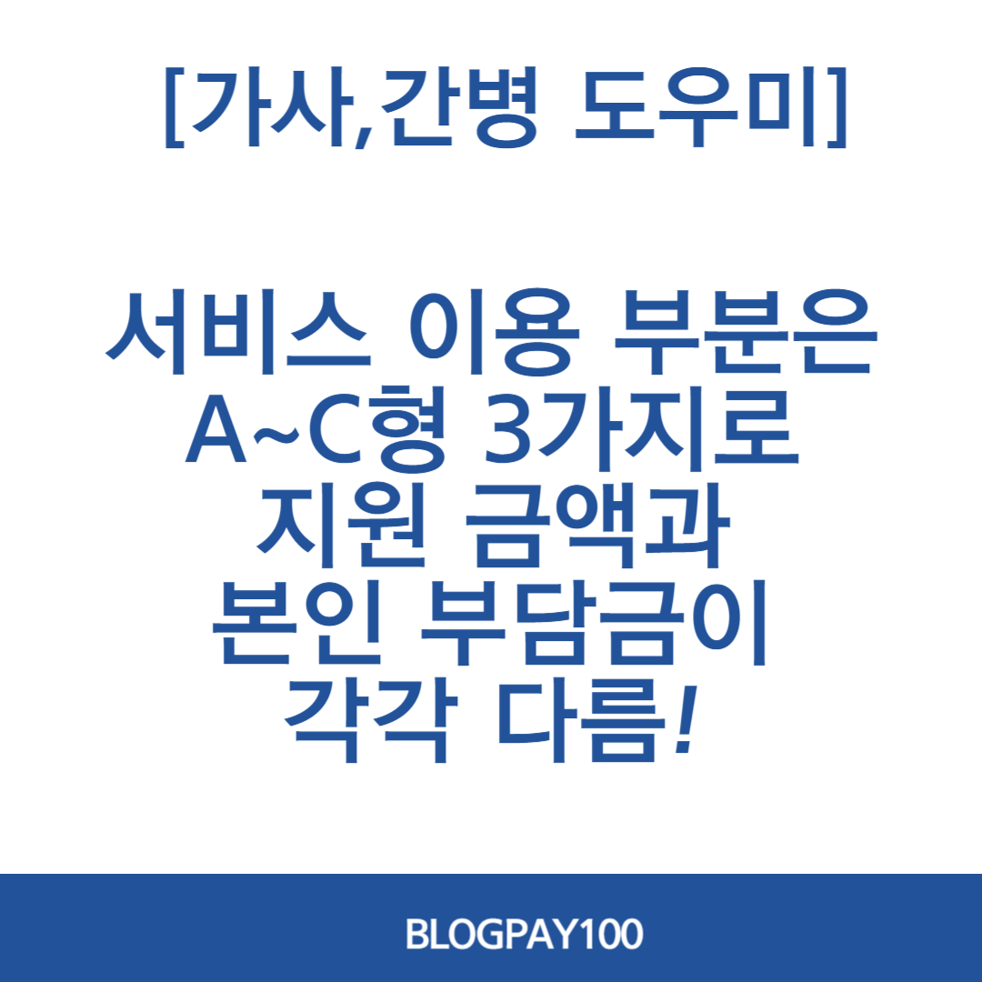 ✅ 가장 중요한 부분이 바로 서비스 이용 부분이며 내가 지원 받을 수 있는 금액과 본인 부담금이 얼마인지 궁금하실 것입니다. 서비스는 총 A-C형 3가지로 분류가 되어지고 대상자 그리고 서비스 가격이 다르니 꼭 확인해 보셔야 합니다.