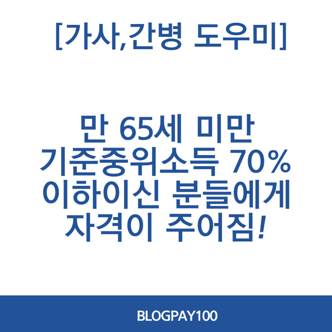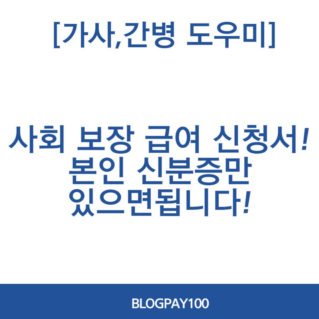 ✅ 일상생활 그리고 사회 생활이 어려운 저소득층 분들에게 [가사,간병] 방문 도움을 받을 수 있는 지원을 정부에서 지원하고 있습니다. 최대 월 40만원 이상의 가사도우미 지원금을 받을 수 있다고 하니 아래 신청 링크 및 자격에 대해서 알려드리도록 하겠습니다.