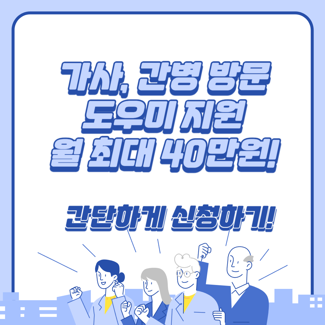 👉 위에 자격 조건이 해당 되신다면 월 40만원 이상의 간병,가사 도우미 방문 지원금을 지원 받을 수 있다고 합니다.