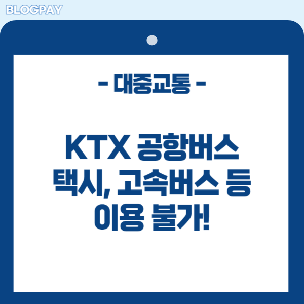 | 이용 불가 대중교통 | KTX, 공항버스, 택시, 시티투어버스, 고속버스 |