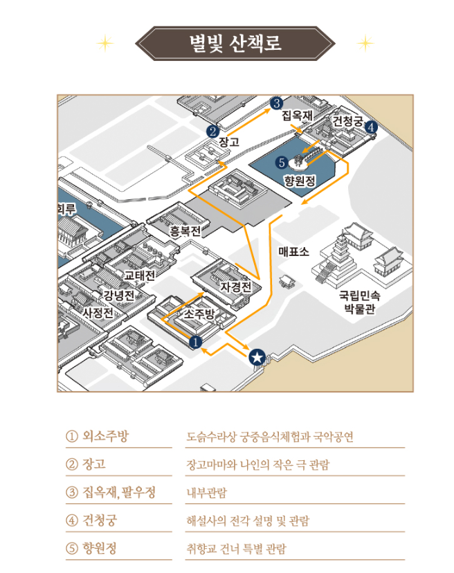 경복궁 별빛야행에서는 2가지 체험을 할 수 있다고 합니다. 궁중 음식 체험과 궁궐 문화 체험입니다.
