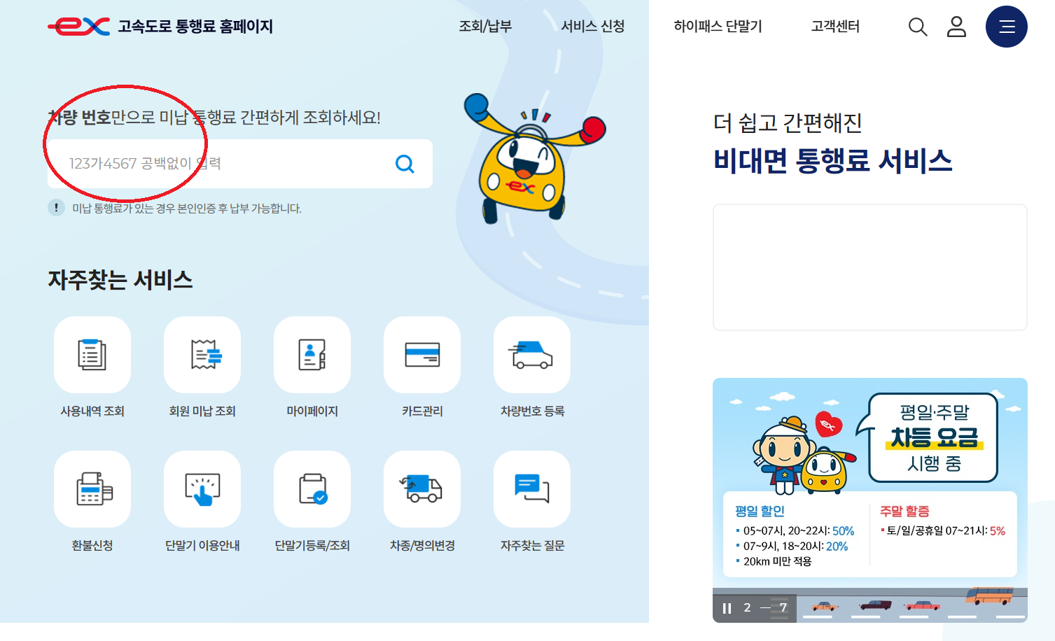 고속도로를 통행 할 때 하이패스 카드가 미부착 되어 있거나, 인식이 되지 않을 때가 종종 있습니다. 그럴 때 요금이 미납이 되어져서 고지서가 날라오던지 부과세가 붙어 요금을 더 지불하게 될 때가 있습니다. 그럴 때 내가 어디서 미납이 되었는지 납부해야 되는 금액이 얼마나 되는지에 대해서 간단하게 조회 할 수 있는 방법이 있습니다.