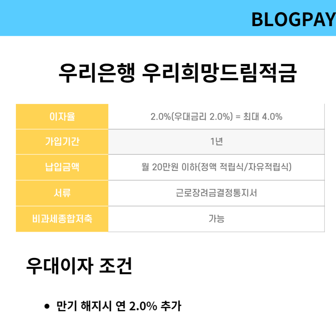 - 이자율 4% 우대금리 1.5% 최대 5.5% 적금이자
