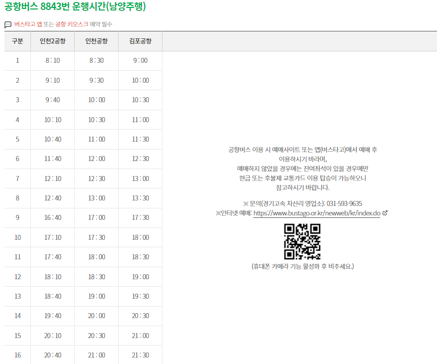 공항버스 8843 시간표(남양주행)