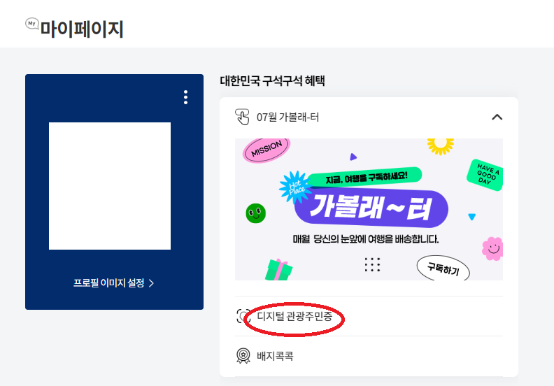 3️⃣ 마이페이지를 통해서 내가 가입한 디지털 관광 주민증을 조회하면 다양한 혜택을 확인 할 수 있습니다.