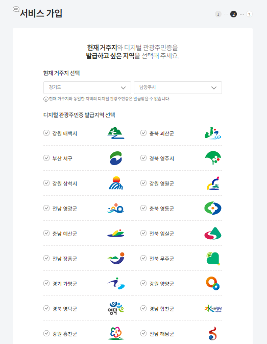 2️⃣ 내가 여행하고자 하는 지역의 디지털 관광 주민증을 클릭하시면 서비스 가입이 모두 완료가 되어집니다. 끝입니다.