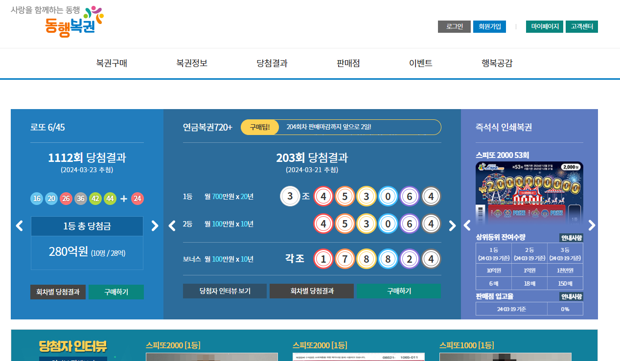 ✅ 동행복권 홈페이지에 접속을 하시면 [로또 ,연금복권, 전자복권, 즉석식 인쇄복권]을 구입하신 분들이 내가 당첨이 되었나 안되었나를 바로 확인 할 수 있는 조회 서비스를 제공하고 있습니다. 로또 구입처에 가서 당첨금을 확인하는 분들도 있겠지만 그럼에도 나는 가는 것이 귀찮고 핸드폰이나 PC를 통해서 확인하고자 하시는 분들이 있다면 공식 홈페이지를 통해서 로그인 없이 당첨 결과를 확인 할 수 있으니 참고하시기 바랍니다.