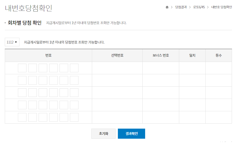당첨금 확인 조회하기