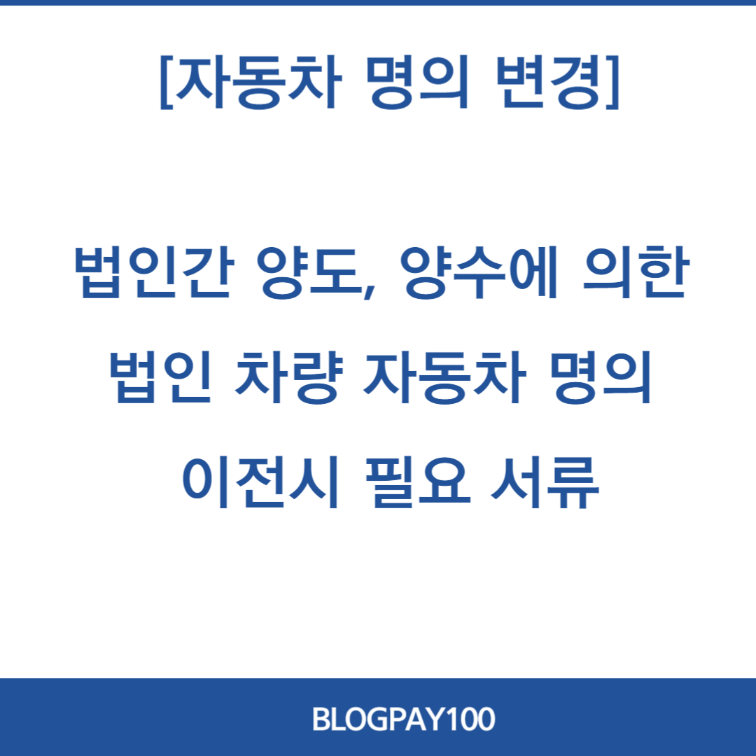 | 기본필요 서류 | 👉 자동차 이전 등록 신청서 👉 자동차 양도 증명서 (양쪽 법인 모두 인감 도장 날인) 👉 자동차 등록증 👉 양수하는 법인 자동차 보험의 가입 확인서 👉 자동차 현재 주행거리 km 확인 |