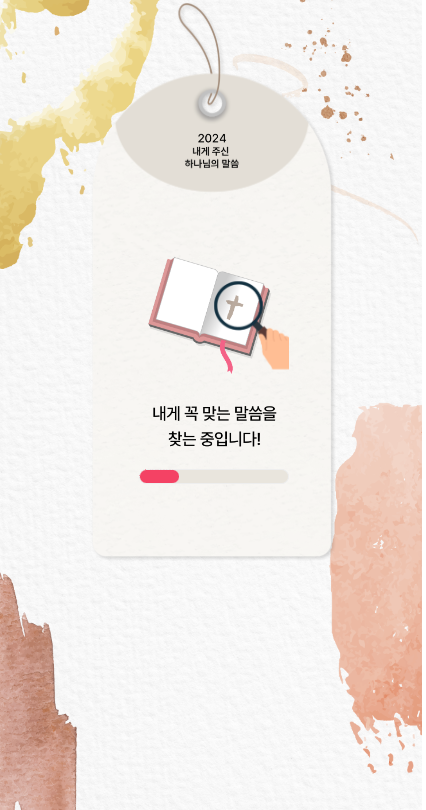 2️⃣ 랜덤 말씀 뽑기를 클릭하시면 아래와 같인 나에게 주시는 성경 말씀을 컴퓨터가 랜덤으로 찾기 시작합니다.