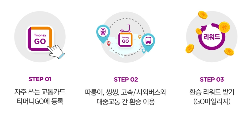 🚲따릉이 할인 방법은 [티머니고 어플]을 통해서만 가능합니다. 티머니고를 이요해 대중교통과 따릉이 등 환승을 이용하셨다면 2일 뒤에 GO마일리지로 환승 리워드를 받을 수 있습니다. (단 하루에 1번 밖에 환승 리워드 지급이 안되니 참고)