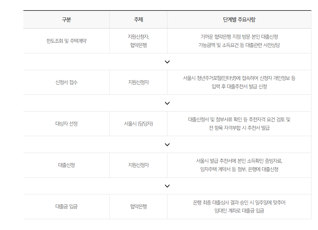 ✅ 마지막으로 살펴볼 내용은 어떻게 신청이 이루어지는지에 대한 내용입니다. 간단하게 정리된 표 사진을 통해서 신혼부부 이자 지원 사업이 어떻게 진행이 되어지고 승인이 되어지는지에 대해서 살펴보시기 바랍니다.