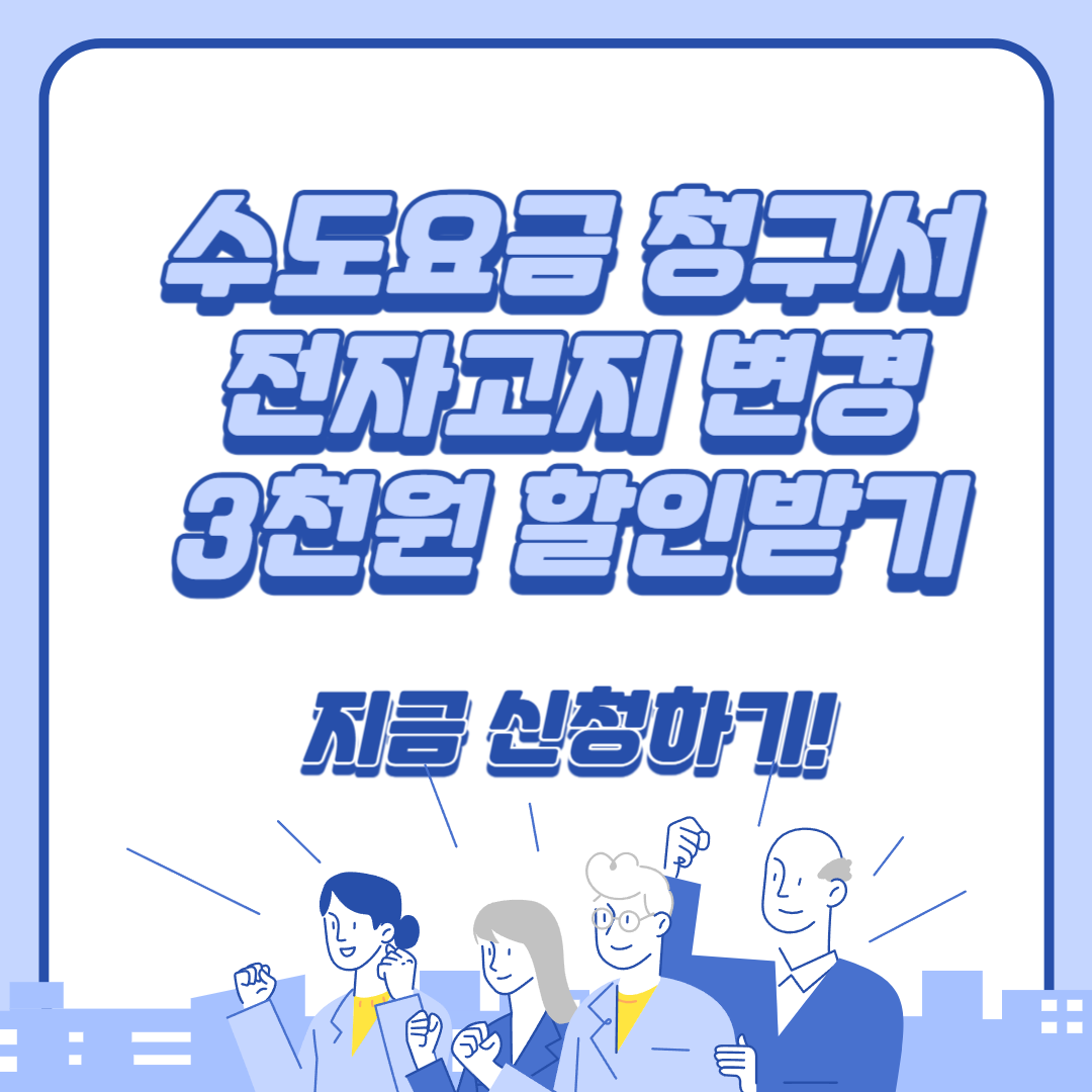 수도요금 청구서 전자고지 변경시 3가지 효과가 있다고 합니다. [개인정보 유출 보호, 첫 감면 최대 3천원, 환경보호]의 3가지 효과를 나타낼 수 있다고 권면하고 있습니다.