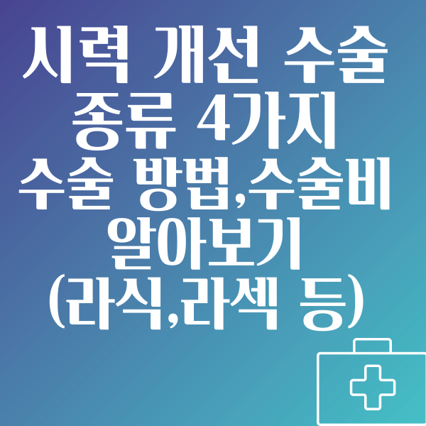 또한 시력 개선 수술은 건강보험이 적용이 되지 않아서 사비로 수술 비용을 모두 지불해야 합니다. 또는 라식 수술 실비 보험이 되는 보험을 가입하고 수술을 받으시는 방법도 있으니 참고하시기 바랍니다.