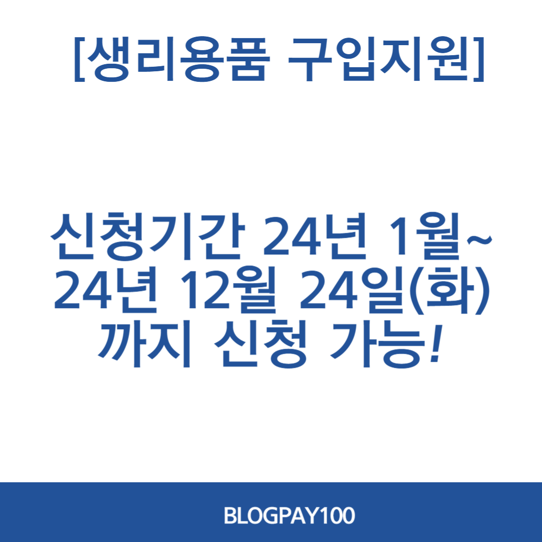 👉 신청 기간은 2024년 1월부터 2024년 12월 24일(화)요일까지 신청 기간을 가지고 있습니다. 만약 신청하지 않은 여성 청소년들이 있다면 지금이라도 신청하셔서 월 13,000원의 생리용품 구매 비용을 지원 받으시길 바랍니다.