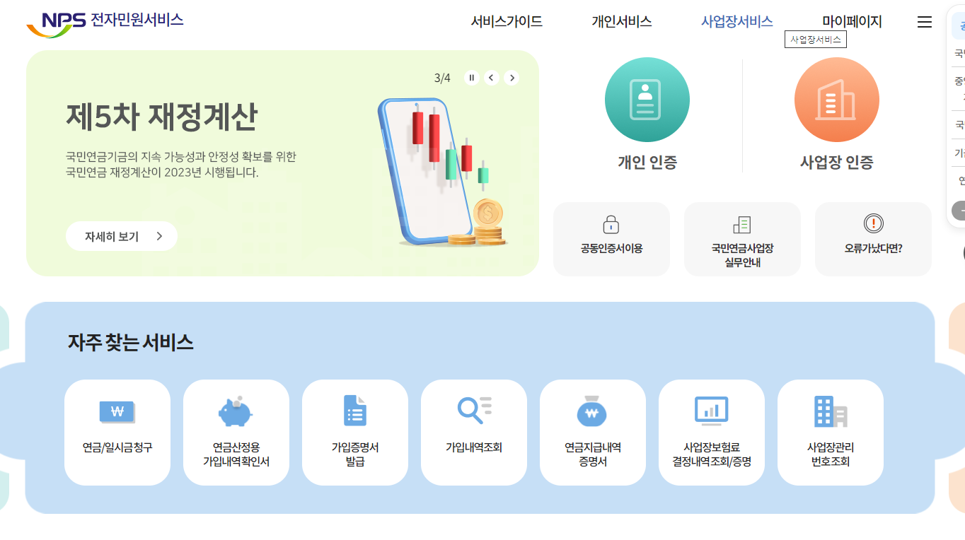 1️⃣ 먼저 연금보험 조회 방법 국민연금공단을 살펴 보기에 앞서 전자민원이용을 위한 로그인이 필요합니다. 로그인을 하게 되면 개인인증, 사업장 인증이 필요한데 거의 보편적으로 개인이 연금을 가입하기 떄문에 개인 인증을 누르시면 됩니다.