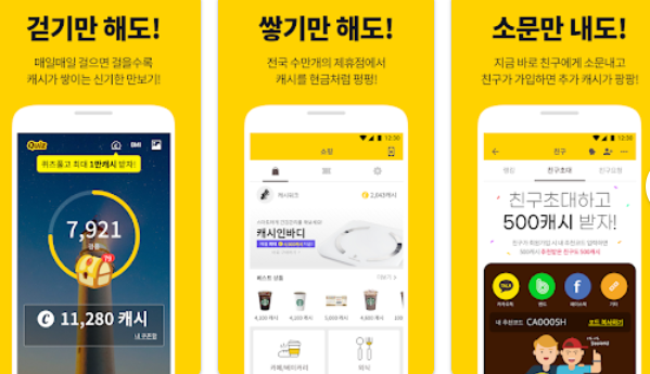 1️⃣ 첫 번째 추천드리는 어플은 걸음수로 돈 버는 용돈 어플입니다. 많은 분들이 일상생활을 하면서 걷게 되는데 그 걸음수를 비례하여 캐시를 적입해 주어 적립받은 캐시로 [GS25, 스타벅스, 교촌치킨 등] 전국에 수 만개의 제휴접에서 사용 가능 할수 있도록 간단한 용돈을 벌 수 있는 어플 중 하나입니다.