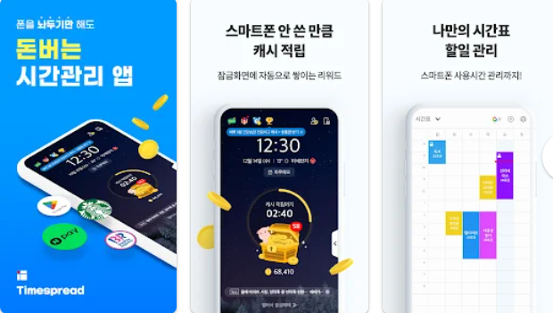 타임스프레드는 일주일 계획을 확인 가능하게 해줄 뿐더러 알람 챌린지 기능으로 매일의 캐시를 적립할 수 있도록 해줍니다. 또한 매일 퀴즈를 풀거나 알람 미션을 완료하면 1만 포인트를 받아 일상에 제휴 되어 있는 업체에서 결제 할 수 있으니 너무나 좋은 어플 중 하나 인 것 같습니다.