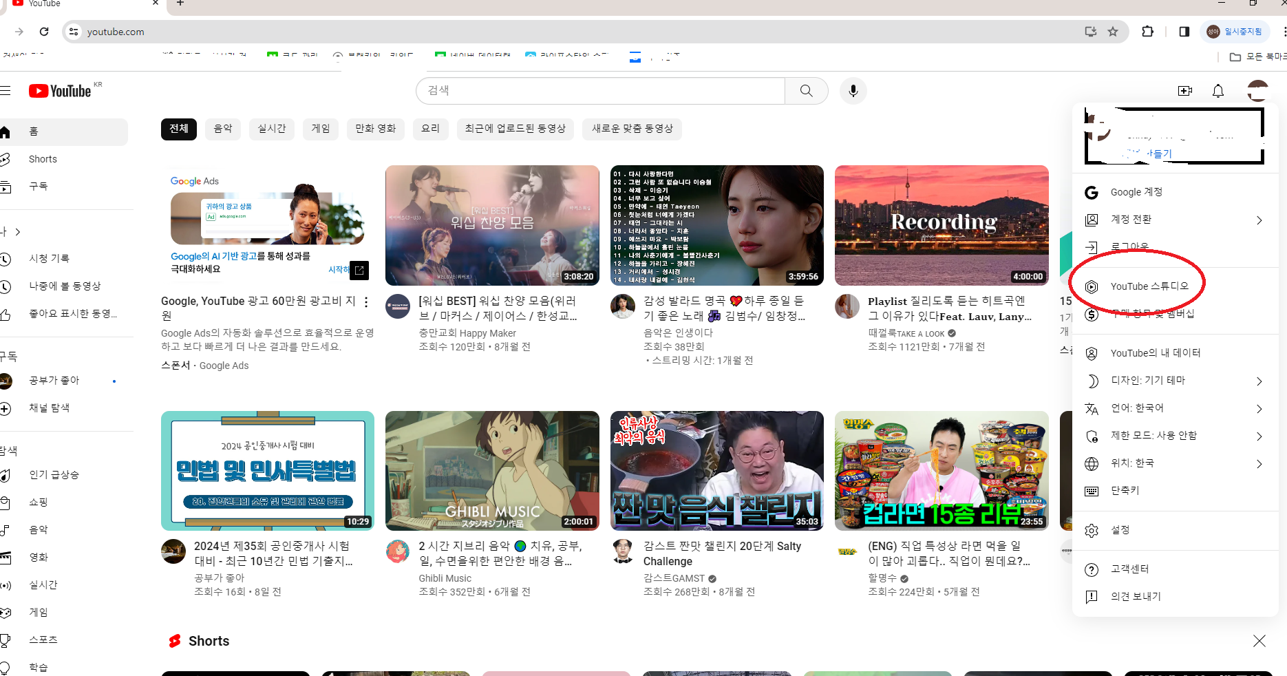 유투브 스튜디오 시작
