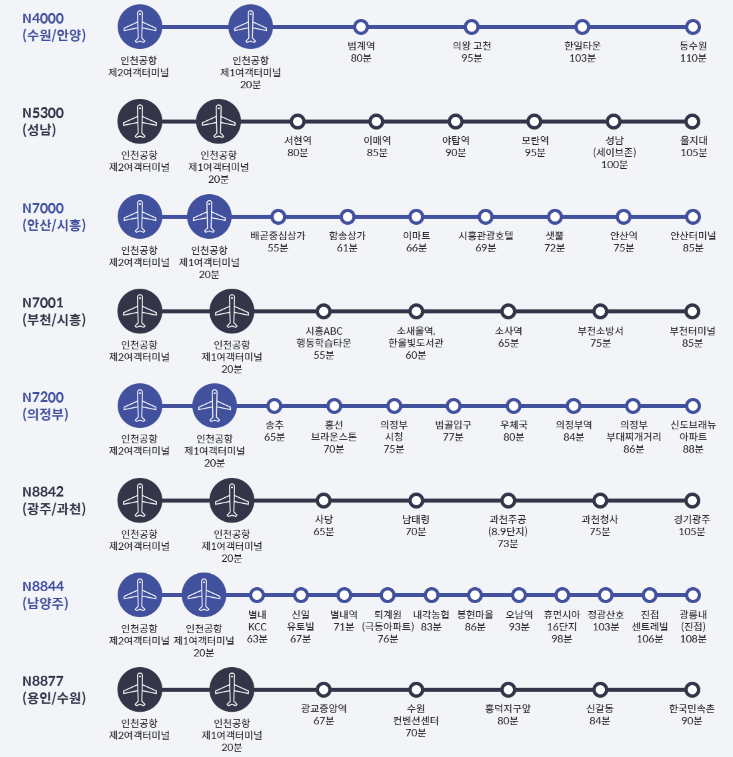 | N4000 | 범계역, 의왕 고천, 한일타운, 동수원 | ✅ 00:10분 / 03:50분 모든 노선 출발 시간 통일 |
