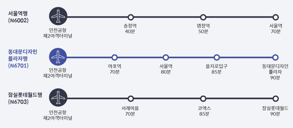 | N6701 | 마포,서울,을지로,DDP | ✅ 23:50분 / 02:00분 / 03:55분 |