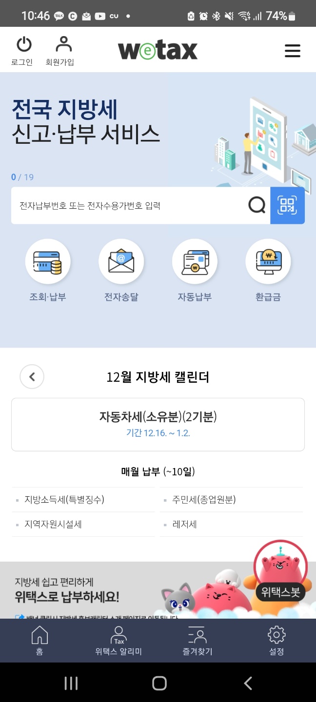 ✅ WE-TAX 서비스: 조회, 납부, 신고, 납부결과, 환급신청 서비스 제공