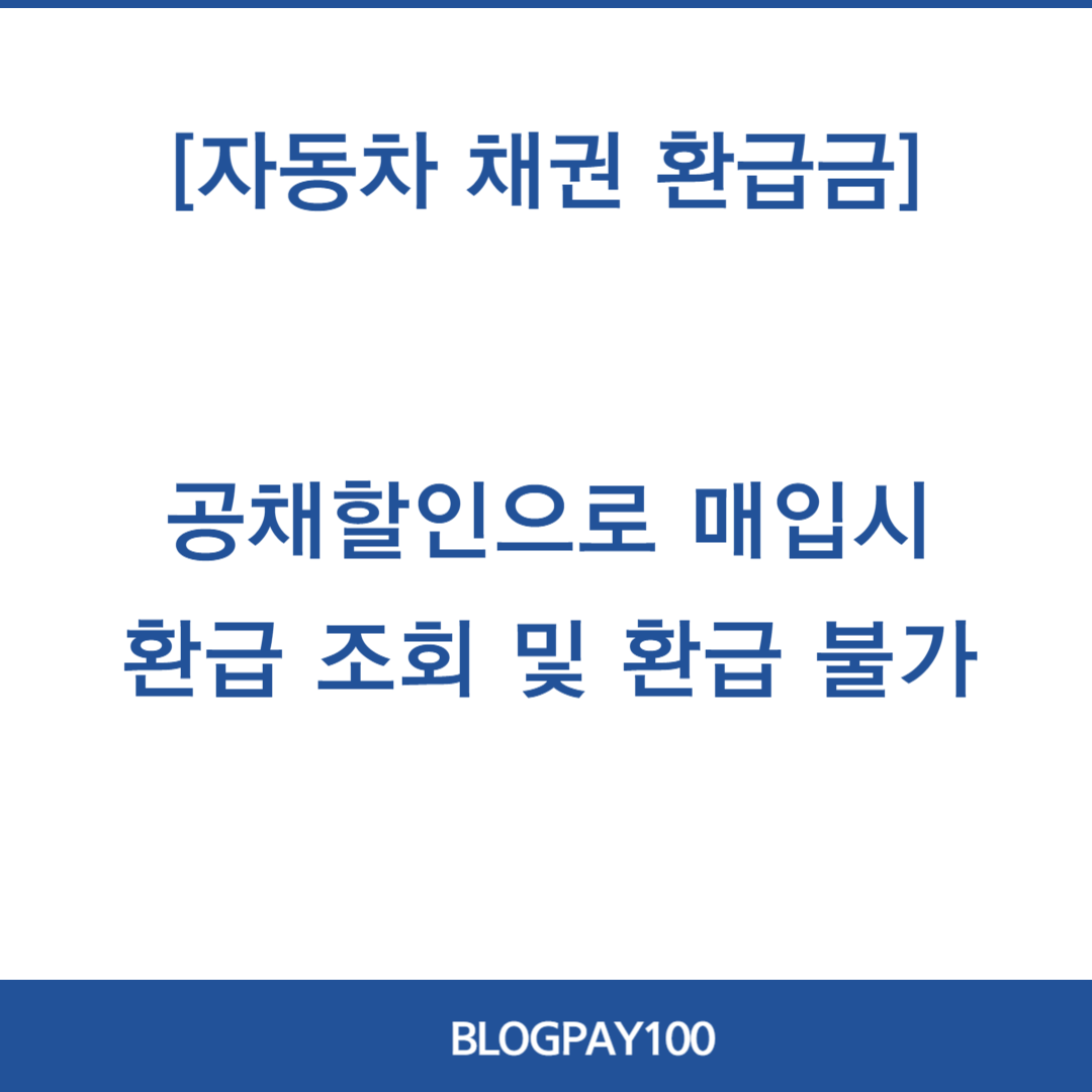 | 자동차 구매 후 바로 되판경우 | 👉 자동차 구매시 채권을 사고 바로 파는 경우가 있는데 이 부분은 환급 조회가 되지 않을 뿐더러 환급금을 돌려 받을 수 없다는 단점이 있습니다. |