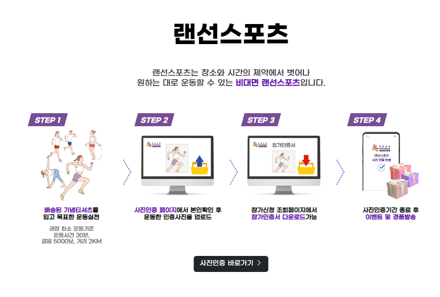 | 참가비 | 10km 코스 : 4만원, 5km 코스 : 3만 5천원, 3km 걷기 : 2만 5천원, 랜선스포츠 : 2만원 |