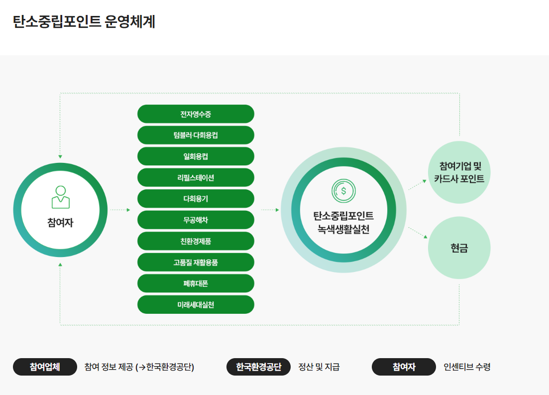 🍀 일반국민의 탄소 중립 생활 실천문화 확산을 위해서 민간기업의 친환경 활동 이용시 이용 실적에 따라서 인센티브를 제공하는데 그 대상이 친환경 활동을 실천하고자 하는 대한민국 국적을 가진 국민 모두가 포함이 되어집니다.