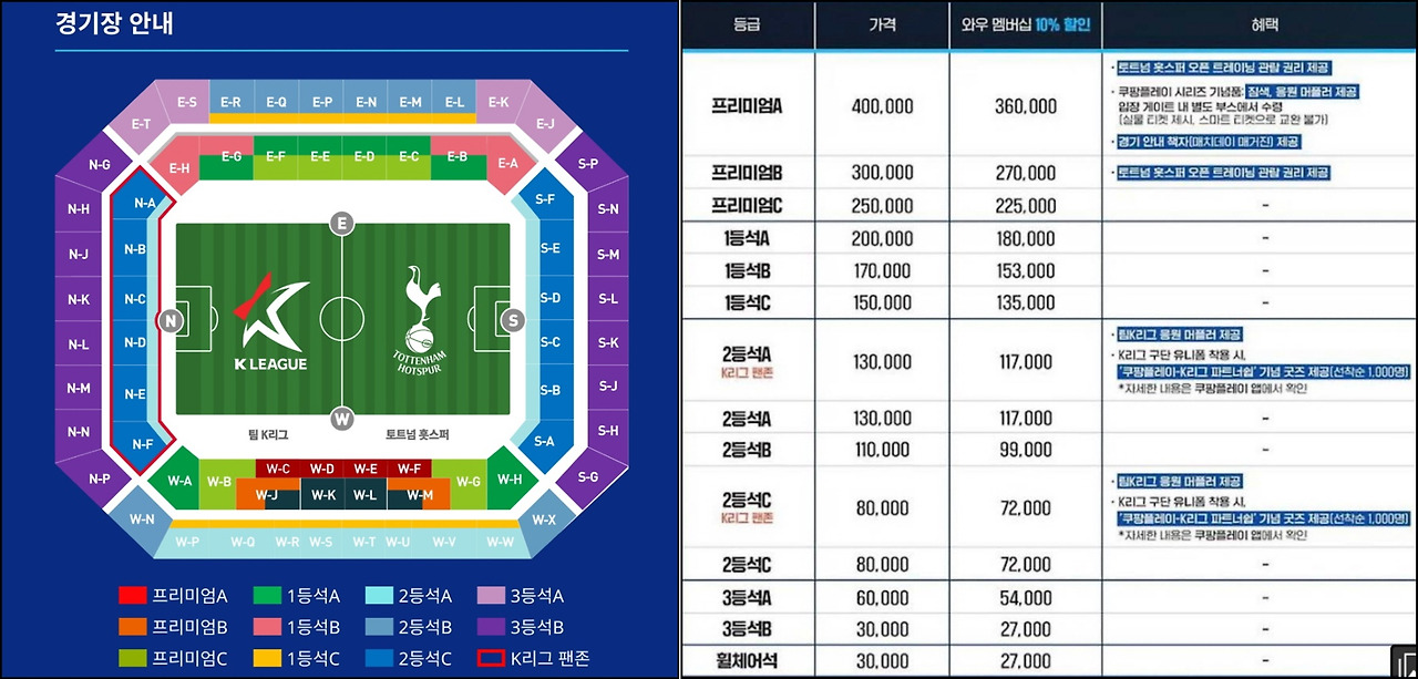 이번에 내한경기 티켓 판매 기간을 살펴보면 [온라인, 현장판매] 기간이 각기 다르다고 합니다. 온라인으로 예매하는 분들로 인해서 좌석이 모두 매진이 되어지면 현장에서 구입 할 수 없으니 쿠팡 멤버십 가입하셔서 꼭 티켓팅 성공하시기를 바랍니다.