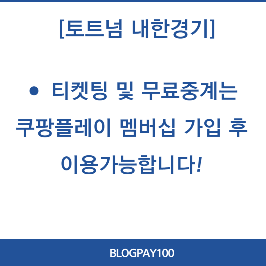 이번에 토트넘 경기 티켓팅에 성공 못하셨어도 쿠팡 멤버십에 가입 되어 있으시다면 월 4,990원으로 40만원의 좌석값을 아낄 수 있는 무료 중계 서비스를 이용 할 수 있다고 하니 꼭 가입하셔서 이번에 큰 경기 놓치지 마시길 바랍니다.