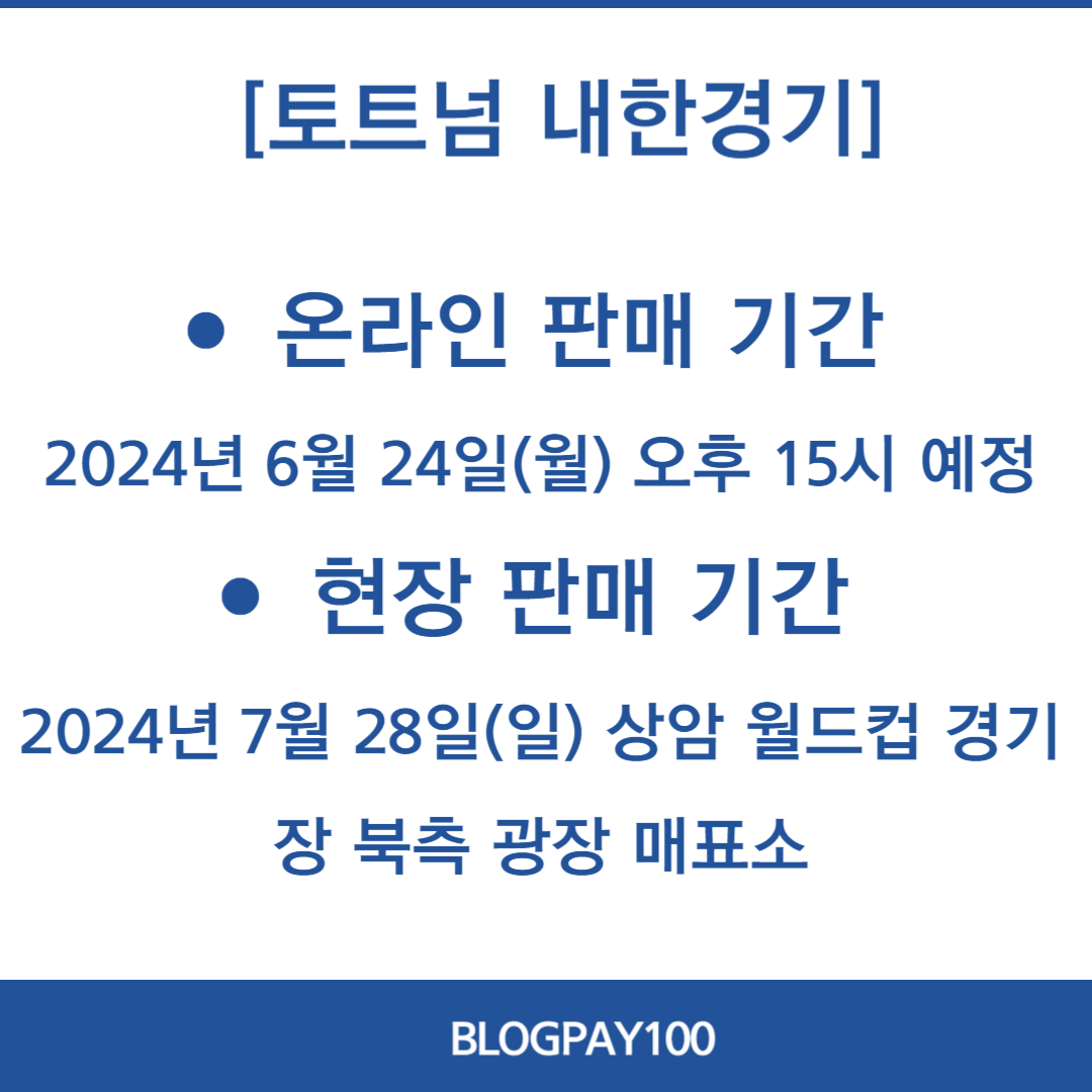 | 현장판매 | 2024년 7월 28일(일) 상암 월드컵 경기장 북측 광장 매표소 |