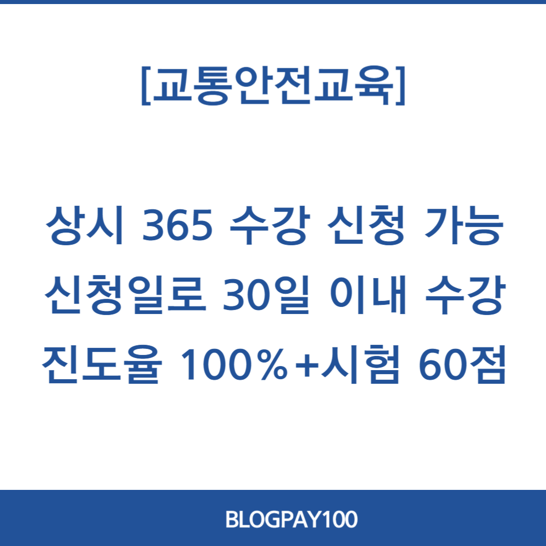 ✅ 수강 신청 기간은 통학버스 운행을 위한 모든 자들에게 상시적으로 신청 받도록 되어 있습니다. 수강 신청 후 신청일로부터 30일 이내에 수강을 하셔야 하며 진도율 100% 시험 60점 이상을 받으셔야 교육 이수증을 발급 받아 어린이 통학 버스를 운행 할 수 있는 자격이 주어지게 된다고 합니다.