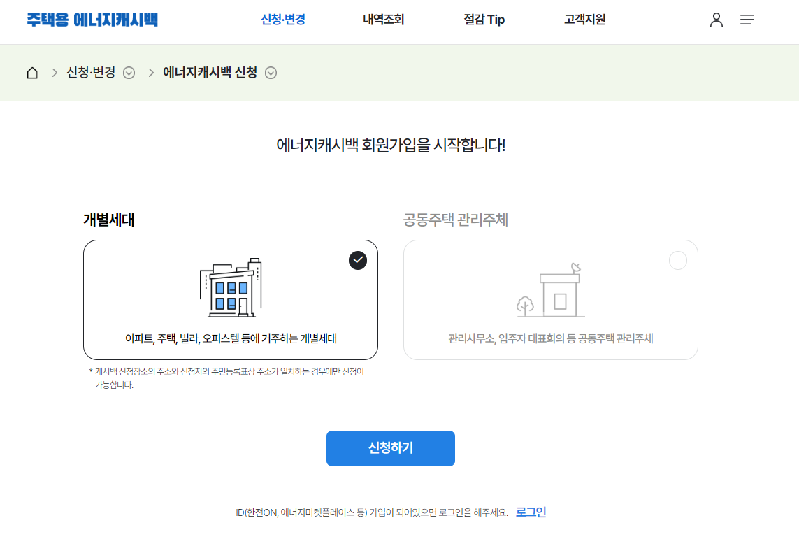 ⚡ 가정용(주택용) 또는 고압 아파트에 거주하는 것이 확인된 자들이 신청 가능합니다. 주민등록상 실제 사는 곳이 동일 주소인 것이 확인되는 가족 구성원 중 1인이 신청 하시면 됩니다.