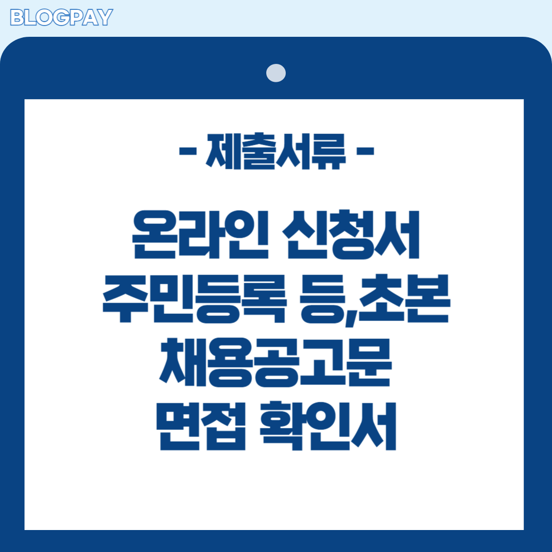 제출 서류는 4가지 서류를 준비하셔야합니다. 온라인 신청서, 주민등록표 등본과 초본 그리고 채용 공고문, 면접확인서 또는 면접 확인서 대체 서약서, 면접 증빙 서류를 반드시 지참하셔야 최대 50만원의 지원금을 지급 받을 수 있다고 합니다.