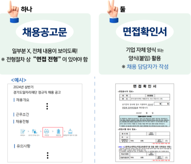 - 면접확인서, 면접확인서 대체 서약서 + 면접 증빙서류를 준비하셔야 합니다.