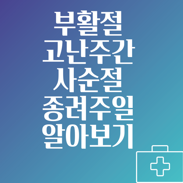부활절 안에는 부활절 이전에 3가지 절기가 있습니다. [사순절,종려주일,고난주간]입니다. 이 3가지 절기를 거쳐야 부활절의 진정한 의미를 깨달을 수 있다고 하는 기독교 안에서 부활절 전에 지내야 되는 절기입니다.