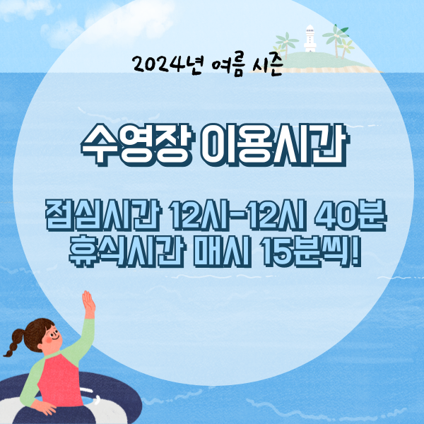 👉 점심시간 및 휴식 시간에는 당연히 입수가 불가하니 꼭 안내에 따라주셔야 쾌적한 물놀이 현장이 될 것 같습니다.