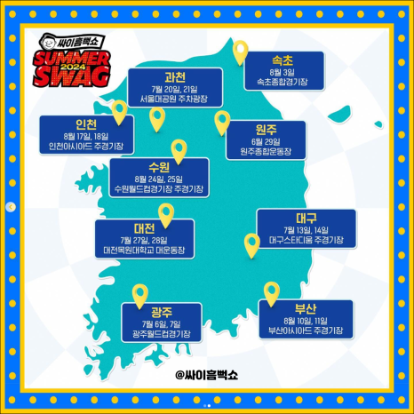 싸이 흠뻑쇼 공연 일정이 드디어 공개가 되었습니다. 2024년 6월 29일 원주를 시작으로 8월 255일 수원까지 전국 9개 도시를 순회하면서 싸이의 뜨겁고 열정적인 흠뻑쇼 공연이 진행이 된다고 하니 아래 구체적인 날짜와 장소를 확인하셔서 예매에 성공하시길 바랍니다.