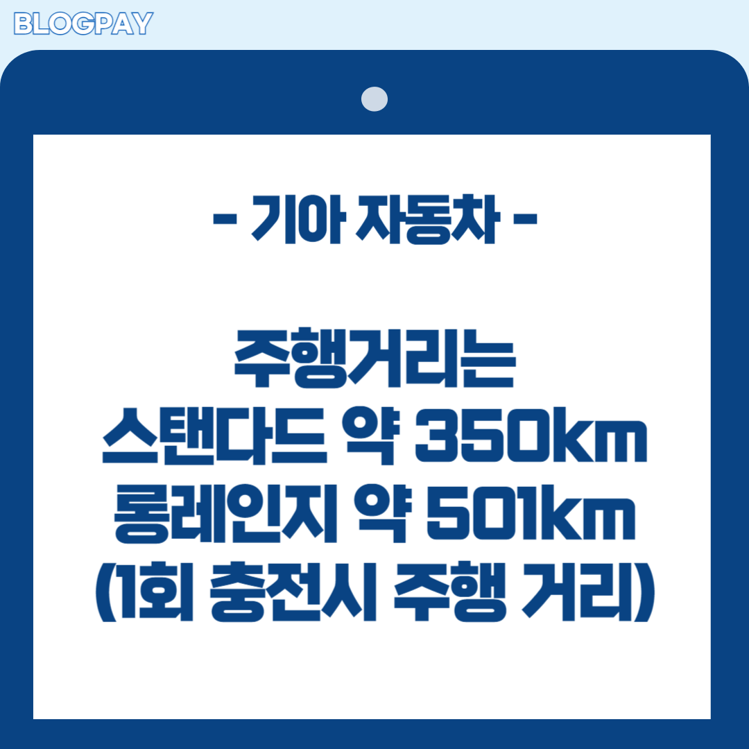 | 롱레인지 모델은 약 501km(1회 충전시) |