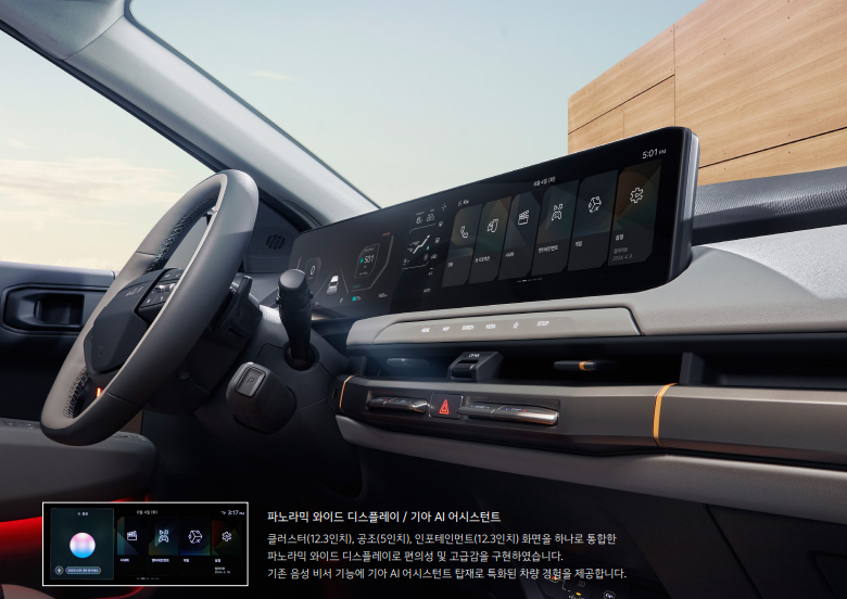 ✅ 실내 12.3인치 인포테인먼트 시스템의 파노라믹 와이드 디스플레어로 더욱더 선명하고 깔끔한 계기판 화면과 깔끔한 전기차의 이미지를 그대로 구현할 것으로 보여지고 있습니다.
