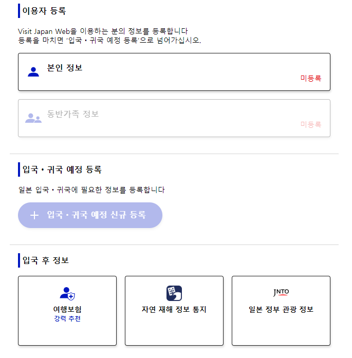 일본 여행 비자 등록 방법은 아주 간단합니다. 일단 가입하기 이전에 [여권 번호, 여권 유효기간, 방문하고자 하는 숙소의 주소와 전화번호 등]에 대해서 숙지하셔야 간단하게 설정 할 수 있으니 참고하시길 바랍니다. 아래 신청 및 등록 방법에 대해서 설명해 드리도록 하겠습니다.