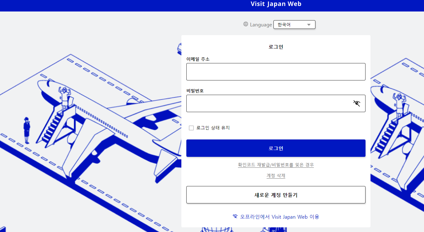 일본에 여행하기 전 반드시 등록해야 되는 부분이 바로 visit 즉 여행 비자 부분입니다. 공식 japan visit web을 통해서 신청 할수 있습니다. 가끔 앱이 돌아다니기는 하는데 공식적인 루트가 아니기 때문에 반드시 공식 홈페이지를 통해서 신청 하셔야 합니다. 아래 링크 남겨드리니 미리 등록하시길 바랍니다.