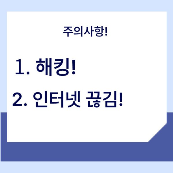1️⃣ 해킹 : 공공으로 쓰는 와이파이 이기 때문에 내 핸드폰이 해킹 당할 수 있으니 이점 염두해 주셔야 합니다.