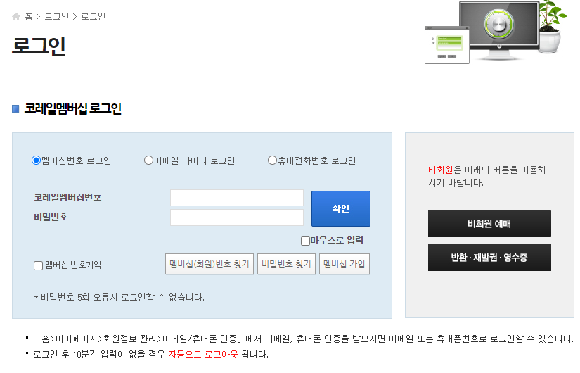 4️⃣ 예매를 클릭하시면 코레일멤버십 로그인 부분이 나오는데 만약 회원가입이 불편하신 분들은 비회원 예매를 하시는 편이 좋지만 가능하면 회원 가입 후 예매를 진행하시는 것을 권해드리고 있습니다.
